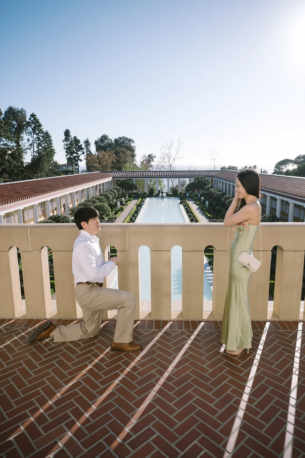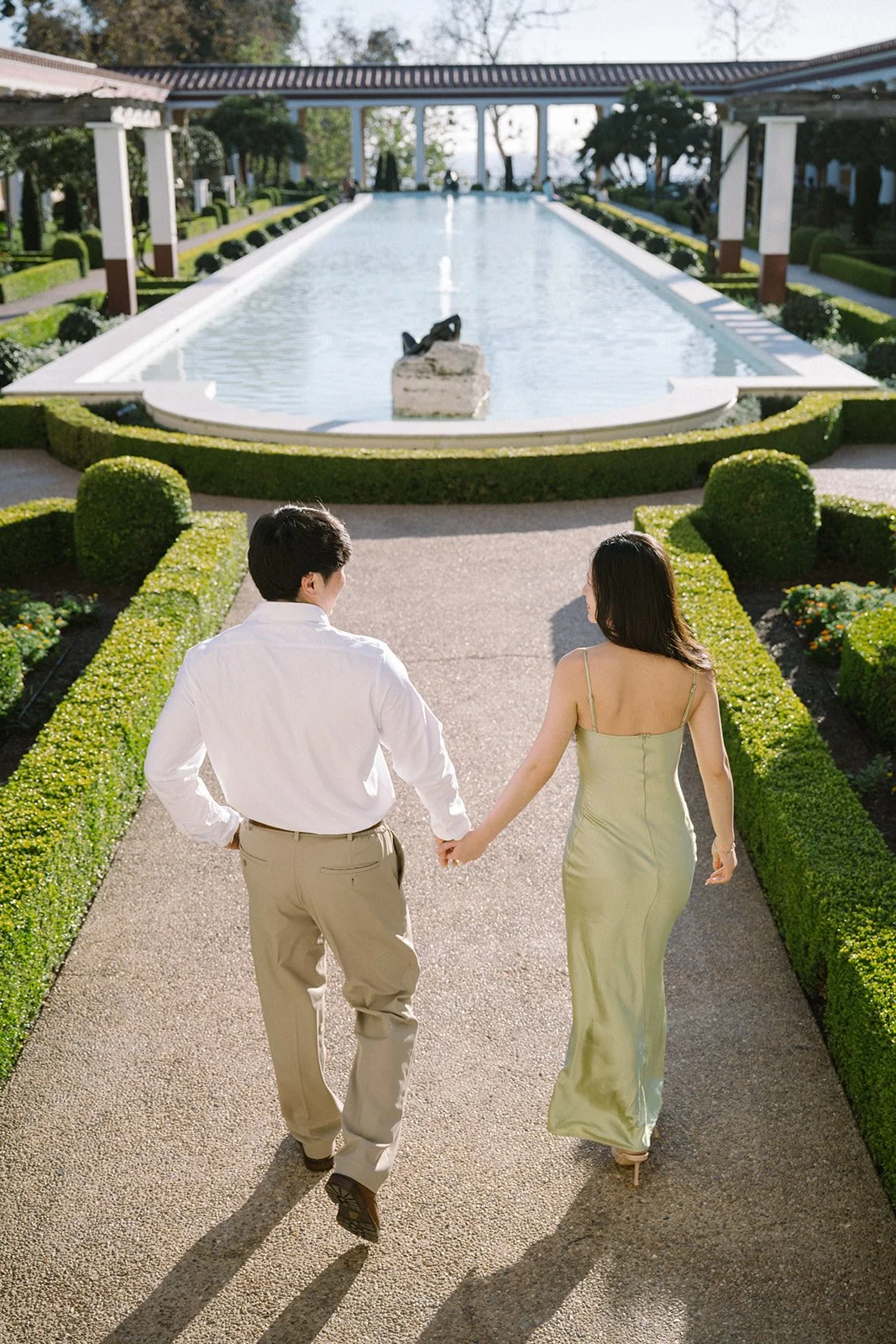 For Jen & Joon, the Getty Villa wasn’t just a beautiful backdrop — it was the perfect canvas for their love story. The quiet paths, reflecting pools, and elegant courtyards created intimate moments where their personalities and connection could shine. From walking hand-in-hand to their first hug after the proposal, every moment felt natural and real.